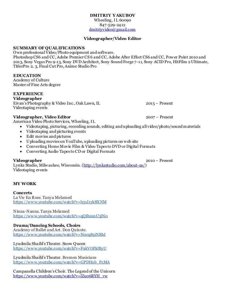 Resume Samples For Videographer